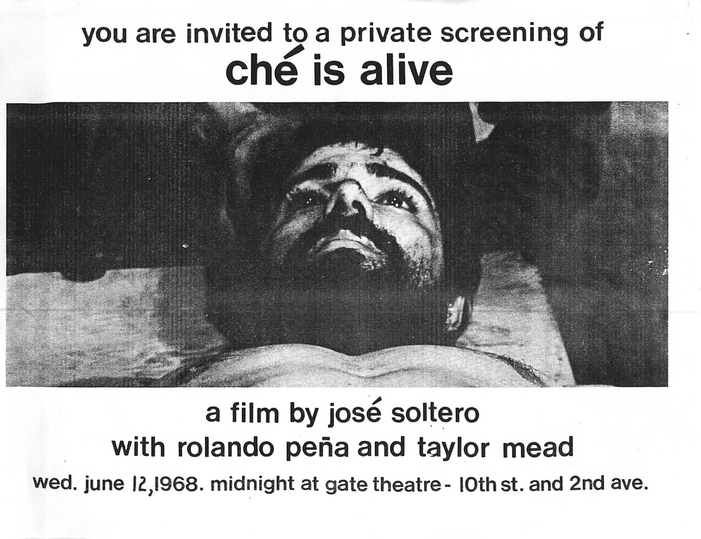 Cuando Mekas reseña la película en su Movie Journal del Village Voice (1-V-1969) destaca la extraordinaria performance de Taylor Mead como soldado norteamericano en Che is Alive!, aunque pasa por alto la puesta en escena del singular cruce intercultural y político en el filme. La colaboración de Rodríguez Soltero con el performero venezolano Rolando Peña en Diálogo con el Che estuvo motivada por la impugnación de la intervención norteamericana durante la captura y tortura brutal del Che en Bolivia, así como por la crítica de la apropiación de su imagen como un evento mediático; espectacularización que se comprueba, por ejemplo, en el Ché! (1969) de Fleischer, con la actuación de Omar Sharif, el primer drama biográfico hollywoodense sobre el ícono revolucionario.